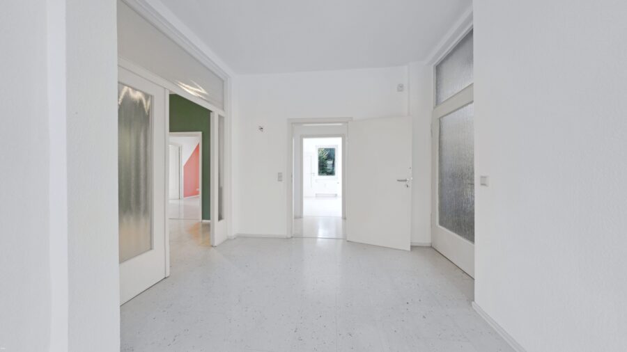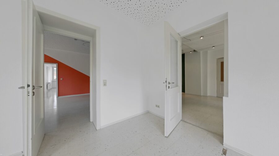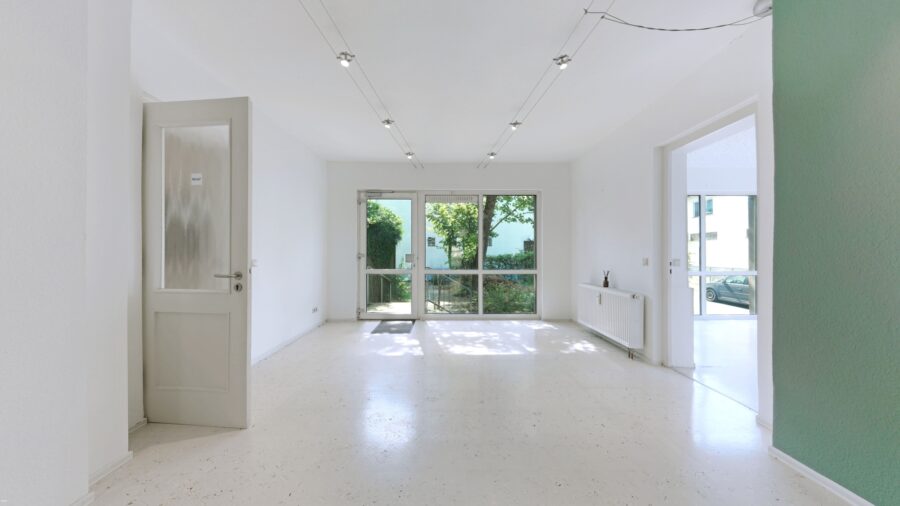 Diese gepflegte Immobilie aus dem Jahr 1970 überzeugt durch ihre massive Bauweise und ihre ideale Eignung für professionelle Nutzungen. Die Praxisfläche umfasst insgesamt fünf helle, gut geschnittene Zimmer, die flexibel für verschiedene Arbeitsbereiche eingesetzt werden können, sowie einen kleinen Küchenbereich und zwei WCs.