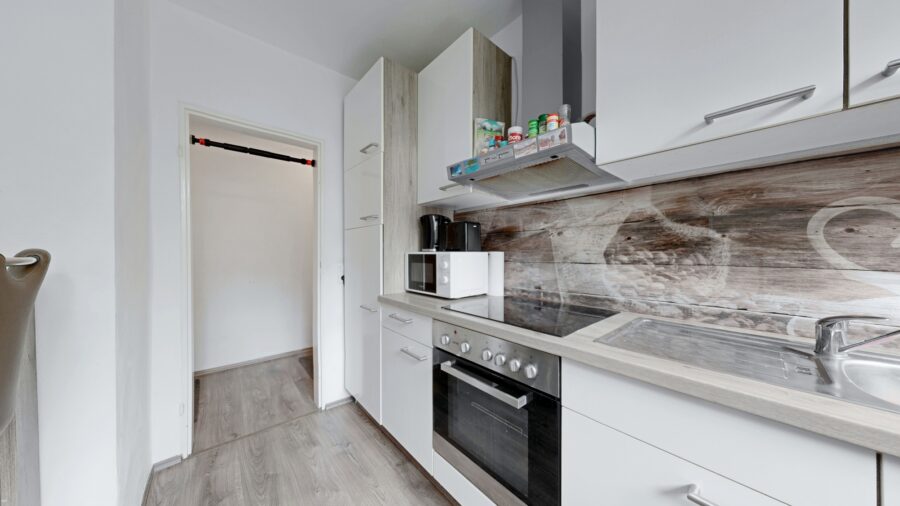 Ein besonderes Highlight ist der sonnige Balkon – ein idealer Ort für entspannte Stunden im Freien. Die modern ausgestattete Einbauküche lädt zum Kochen und Genießen ein, während das zeitgemäß gestaltete Badezimmer den positiven Gesamteindruck abrundet.