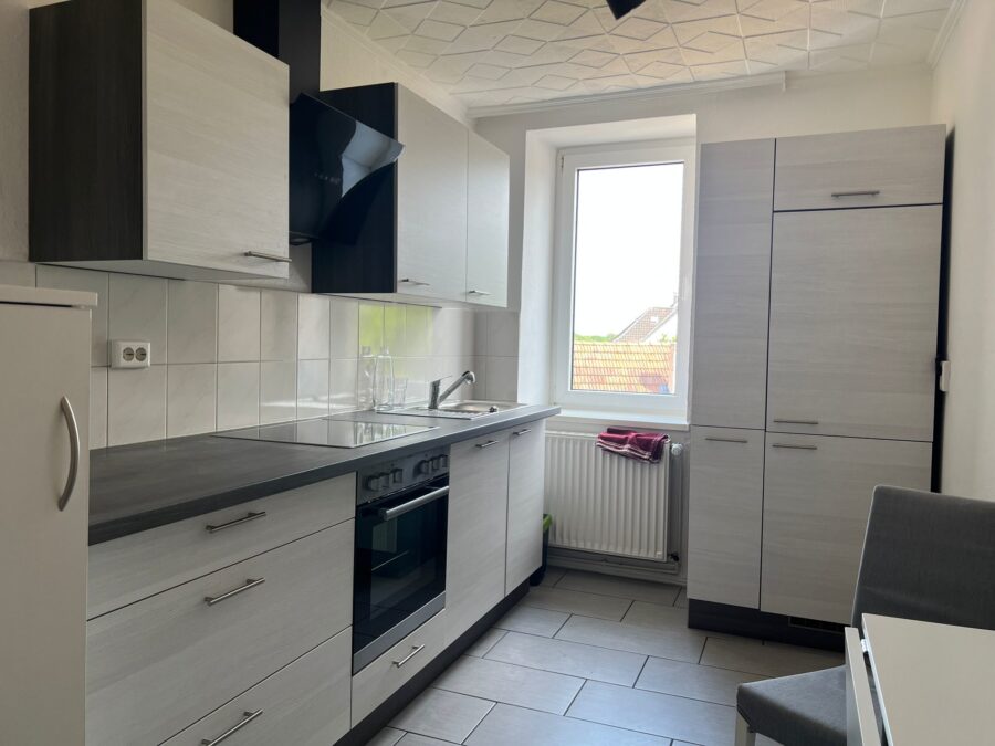 Die vorhandene Einbauküche ist funktional ausgestattet und fügt sich harmonisch in den Raum ein. Sie kann bei Interesse gegen einen fairen Abschlag vom aktuellen Mieter übernommen werden.